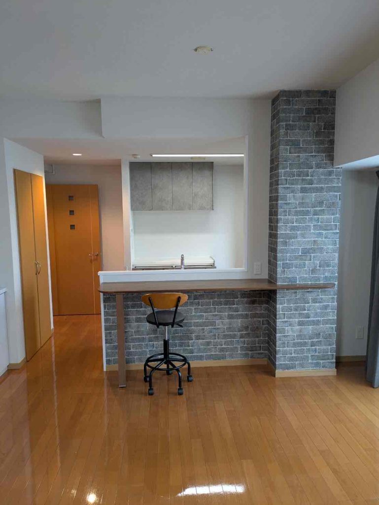レンガ調のクロスがアクセントとなり、リビングとのつながりを感じる“カフェのような空間”を演出しています!
