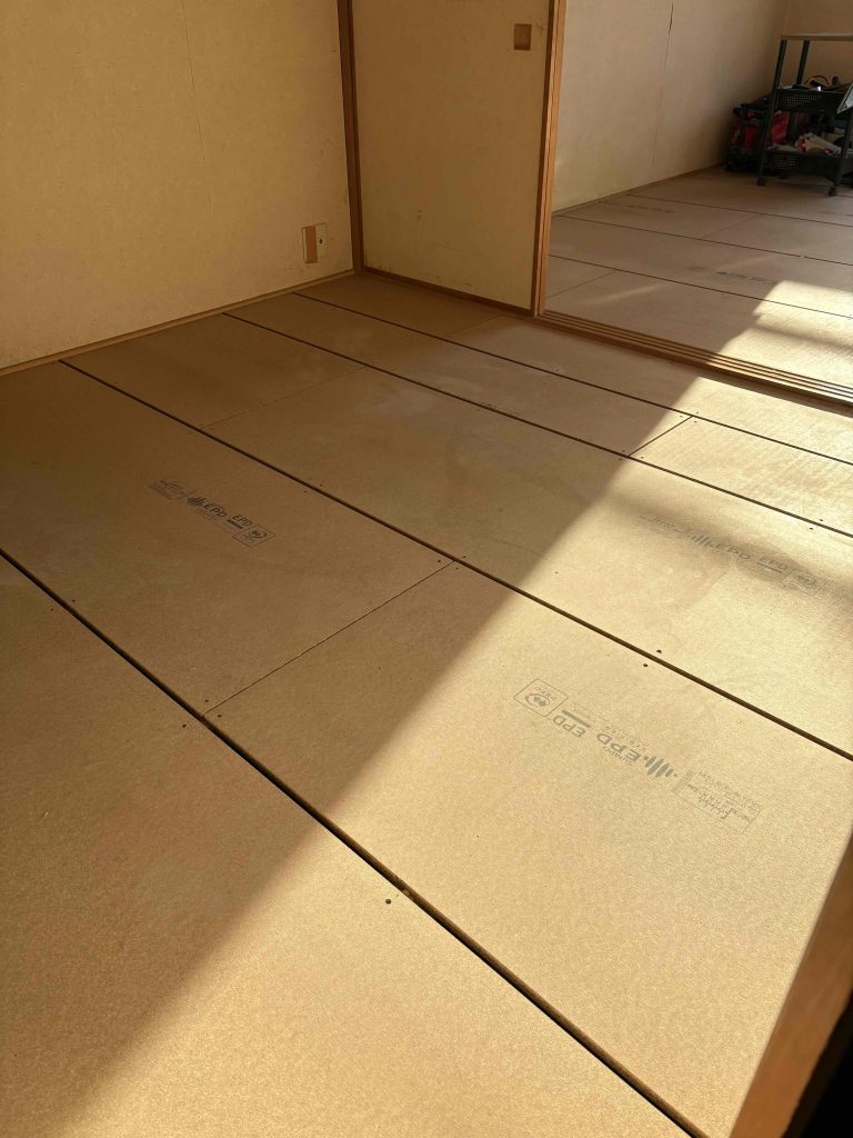 既存の畳を撤去後、根太組みから施工を行い、床の下地を丁寧に整えました!